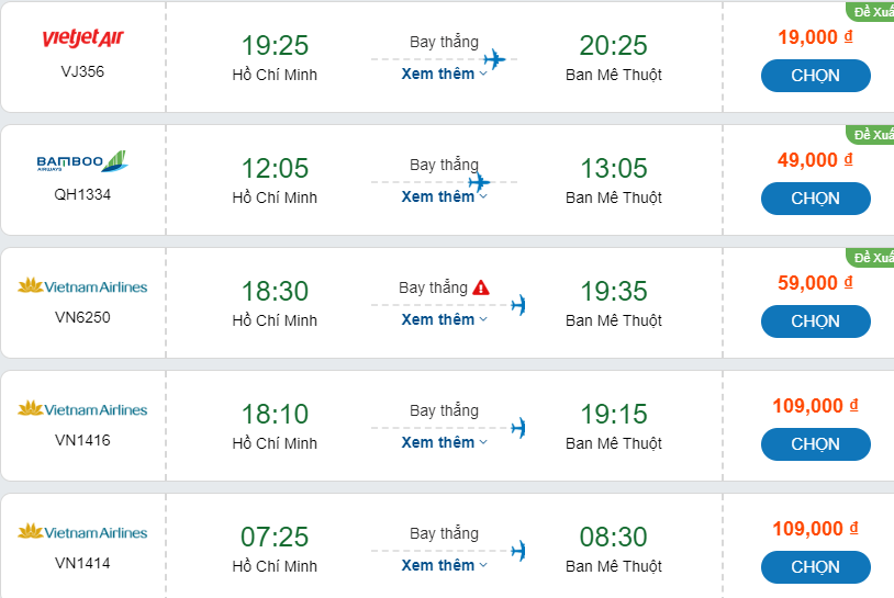Tín đồ du lịch cuối năm này hẳn sẽ cực hứng thú với chuyến bay đến Buôn Ma Thuột khởi hành từ Sài Gòn bởi mức giá cực sốc, chỉ từ 19.000 đồng. Đây là giá vé mà hãng hàng không giá rẻ Vietjet Air tung ra trong tháng 11 này. Vé rẻ luôn có hạn, vì vậy hãy lên kế hoạch săn vé sớm nhất. Trong khi đó, Bamboo Airways cũng dành tặng hành khách loạt vé rẻ chỉ từ 49.000 đồng. Hãng Vietnam Airlines áp dụng mức giá từ 59.000 đồng. Bạn có thể tham khảo chi tiết bảng giá dưới đây: