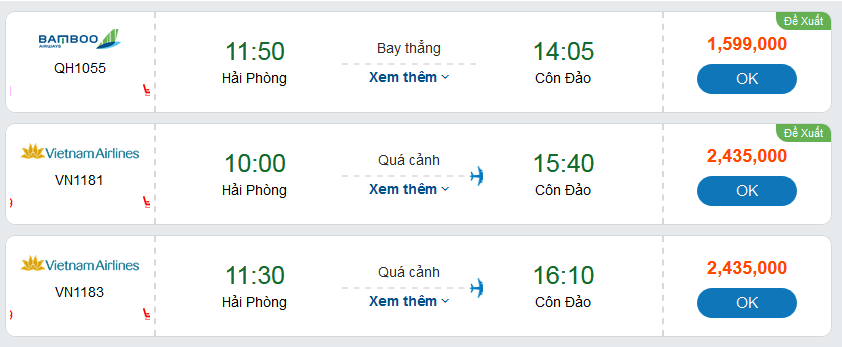 Giá vé máy bay Hải Phòng đi Côn Đảo