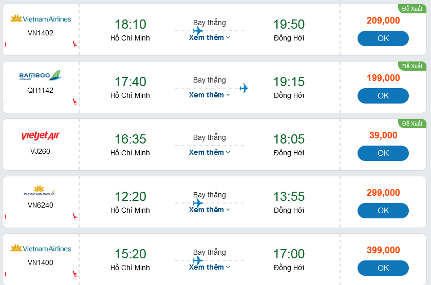 Giá vé máy bay thành phố Hồ Chí Minh đi Đồng Hới, Quảng Bình