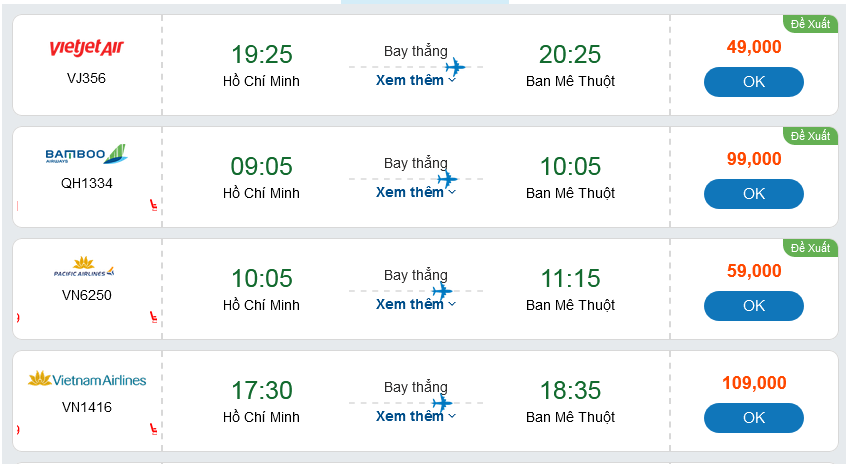 Đường bay TPHCM đi Buôn Ma Thuột cũng được các hãng hàng không nội địa Việt Nam khai thác với tần suất cao, đáp ứng nhu cầu đi lại của người dân. Giá vé máy bay TPHCM – Buôn Ma Thuột tháng 3 cũng đang ở mức cực thấp, chỉ từ 49.000 đồng. Tuy nhiên số lượng vé rẻ sẽ hết nhanh chóng nên bạn cần lên lịch đặt vé càng sớm càng tốt nhé!