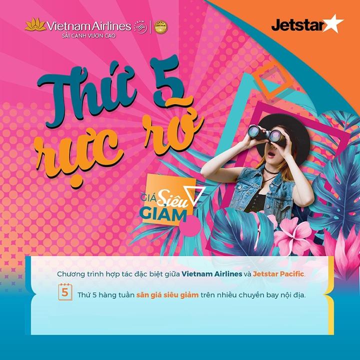 Thứ 5 rực rỡ là chương trình khuyến mãi hàng tuần của Vietnam Airlines. Duy nhất trong ngày thứ 5, hàng loạt vé máy bay nội địa có giá cực mềm dành tặng hành khách. Tất nhiên số lượng vé khuyến mãi có hạn nên bạn cần nhanh chóng lên kế hoạch đặt vé sớm nhất. Dưới đây là một số hành trình giá tốt mà bạn có thể tham khảo:
