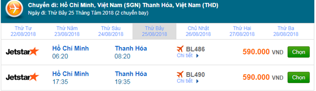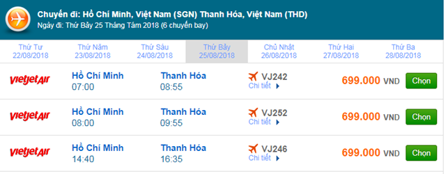 Hãng hàng không VietJet Air áp dụng mức giá 690.000 VND/ 1 chiều cho vé máy bay Sài Gòn đi Thanh Hóa.