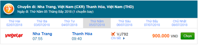 Giá vé đi Thanh Hóa tháng 7 bao nhiêu?