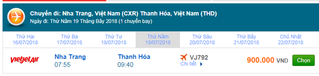 Chặng bay từ Nha Trang đi Thanh Hóa chỉ có duy nhất hãng hàng không Vietjet Air khai thác với số lượng vé máy bay có hạn.