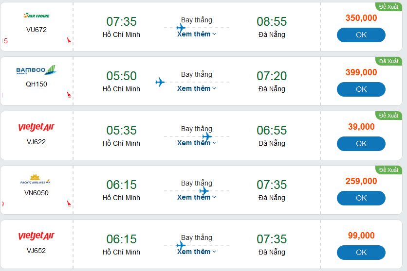 Giá vé máy bay TP Hồ Chí Minh đi Đà Nẵng